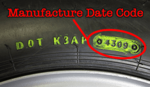 In this image you can see the code 4309. This indicates that the tires were manufactured on the 43 week in the year 2009.
